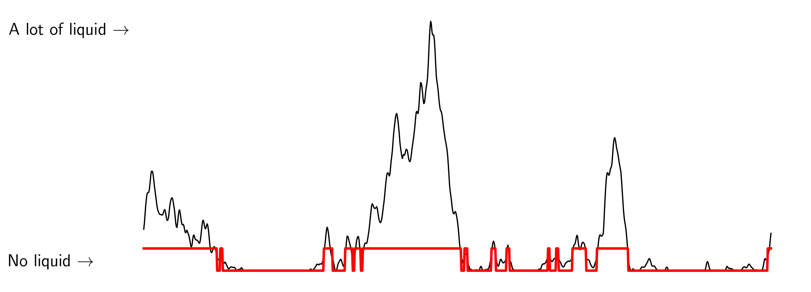This binary approximation is far worse for the liquid water plot, because in this case the black line doesn’t hit a ceiling: